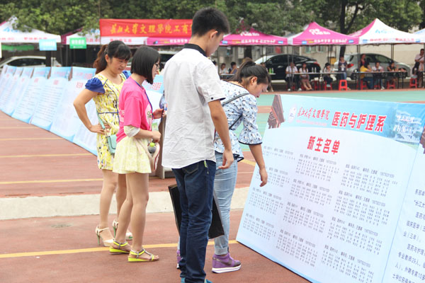 志愿者带新同学查看分班情况
