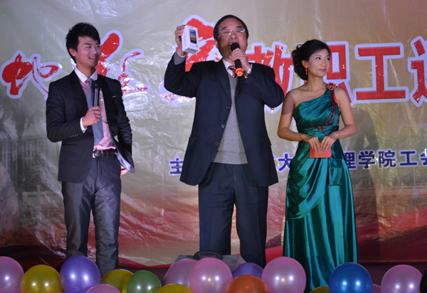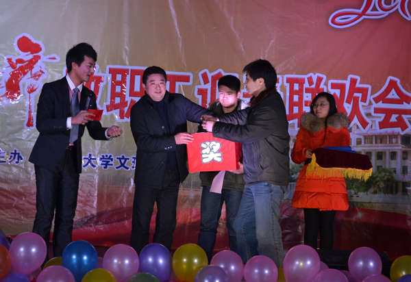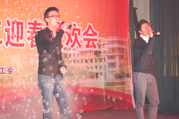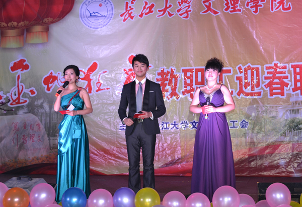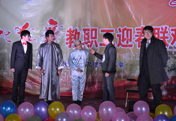 理工学部呙明辉、熊守丽老师表演的话剧《文理调播》,以新闻联播的方式配上搞笑幽默的解说词,总结了公司在2012年取得的成绩,新颖的形式、幽默的台词引得观众们捧腹大笑,现场沉浸在一片欢乐氛围中。