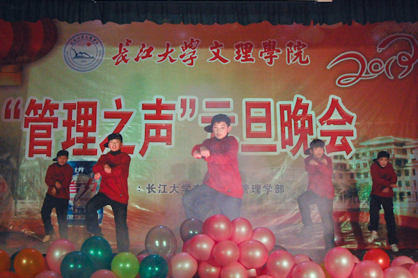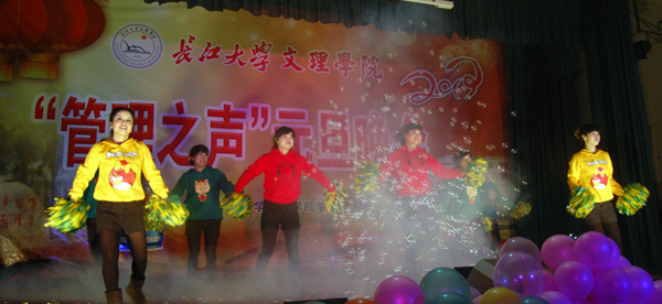 光影、人海、彩球和挥舞的荧光棒,点燃了阑珊夜色中的欢乐与激情。投影屏幕上展示了大段有关新年祝福的VCR,管理学部师生通过新通讯技术互致新年问候,为晚会增添了浪漫和温馨的色彩。