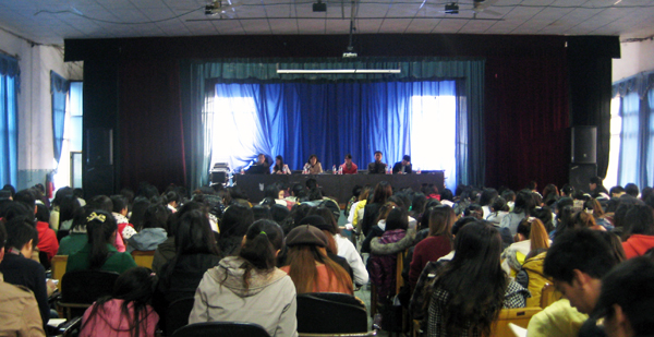 许梦怡就2013届毕业生的就业工作做了动员。她希望全体毕业生能从思想上重视,行动中努力,在实践中锻炼自己,提高就业能力,并对2013届毕业生的信息档案整理、沟通机制完善、员工安全自治作了重点强调。
