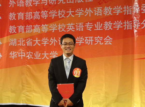 本网讯(记者 周芳 通讯员 韩翠萍)11月3日,2012年“外研社杯”全国英语演讲大赛湖北赛区复赛在华中农业大学举行。外语学部英语专业王方国同学荣获三等奖。