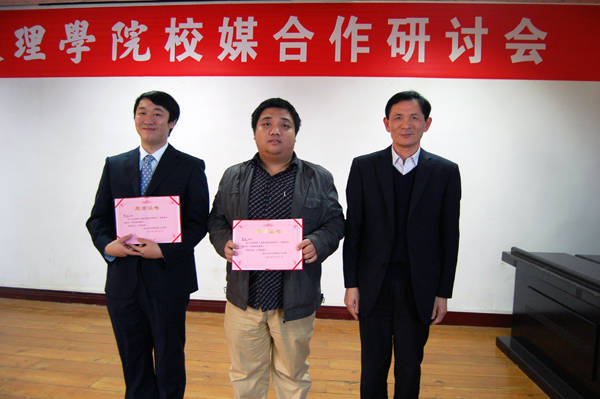 夏学期合作教育的指导老师黄研发表讲话,总结了夏学期实践的收获和体会,表达了教师投身实践、探索教改新模式的决心和勇气。员工代表潘程、朱成晓同学回顾了夏学期实习阶段的宝贵经历,并表示,通过艰辛而愉快的夏学期合作教育,自身在地方媒体进行了艰苦历练,对新闻采访有了全新认识,采访能力得到明显增强,感谢校媒双方为员工搭建了提高专业素养的有利平台。