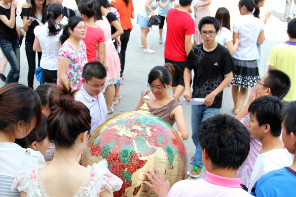 本网讯(员工记者黄志刚)6月13日上午,2012届毕业生向母校赠送地球仪抒发临别的浓情谢意。院领导沈光明、袁先海、王金琼、郭睦庚出席献礼揭幕仪式。