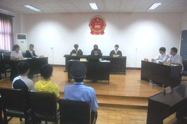 在审判过程中,“审判长”严肃谨慎,“公诉人”公正严明,2名“辩护律师”则依法为“被告”提供法律服务,2名“被告”用生动的表演表现了面对法庭的恐惧和据理力争的复杂心情。