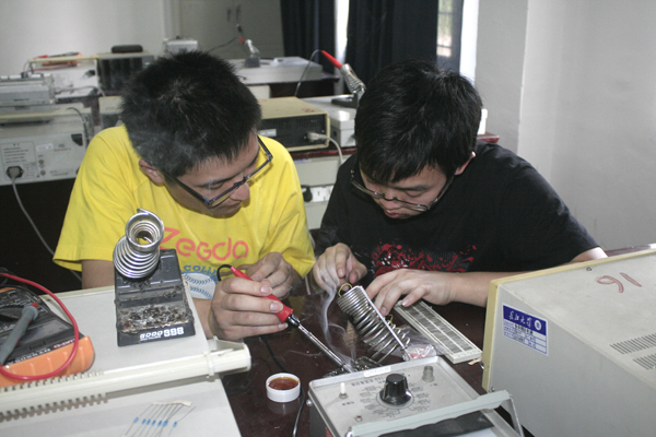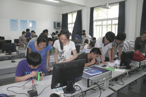 本网讯(员工记者 张珊珊)5月17日下午,在公司创新实验室,第六届“泮池五月风”电子产品设计与制作大赛正在紧张进行中。当天,全院各专业的159名员工参加了此次比赛。同学们每3人一组,以团队竞赛的形式进行比赛。刘美林、李相敏、万正兵、潘小红和张立新老师担任大赛评委。