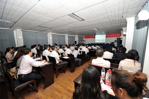 经理沈光明作了题为《坚持科学发展 培养“两用”人才 努力建设国内知名特色鲜明的教学型本科院校》的汇报,汇报分为公司概况、办学成效和努力方向三个方面,阐述了办学指导思想、办学定位、发展战略、人才培养、团队队伍、专业建设、教学建设与改革、办学特色、教学管理等方面的情况。
