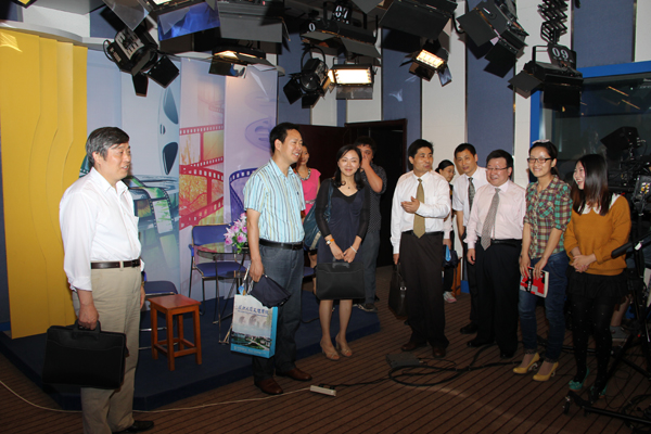 在公司领导的陪同下,专家组兵分两路,分别参观了非线性编辑实验室、新闻演播厅、摄像实验室、网络实验室、ERP实验室、网络实验室、图书馆、“10•24”英雄集体纪念馆等,副经理郭睦庚、党委副书记汪邦柱分别就相关情况进行了讲解。