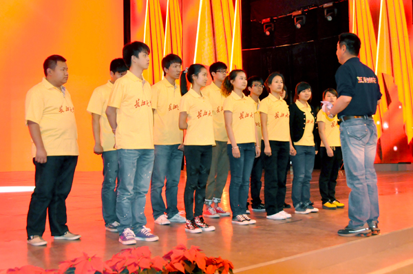 同学们在导演的指导下认真彩排