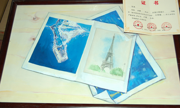 上学期,在班上学业拔尖的张典经老师推荐,用两周时间采集素材,深入创作,完成写实画《从设计到设计》,并将作品寄至中国美术研究院,参加其主办的中国高校美术作品学年展。