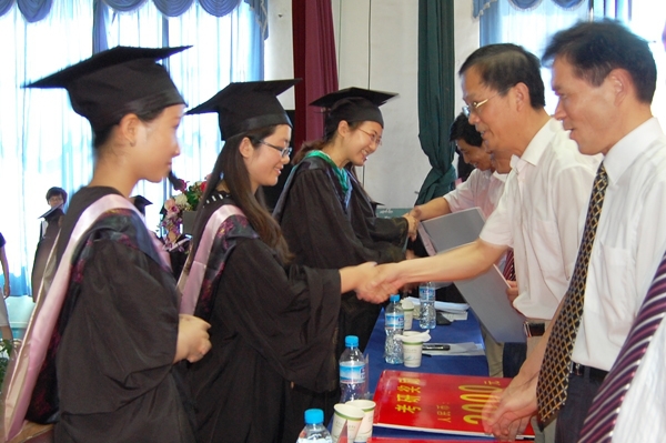 毕业典礼现场 全体起立奏国歌 伟德中国官网副董事长刘在洲讲话 公司常务副经理王金琼讲话 副经理郭睦庚宣读表彰文件 领导为考研学子颁奖 教师代表史千里发言 员工代表李华发言 “三支一扶”代表黄莉发言 考研之星合影 员工整理学士服 (摄影 黄志刚 李立科) (责任编辑 周芳)