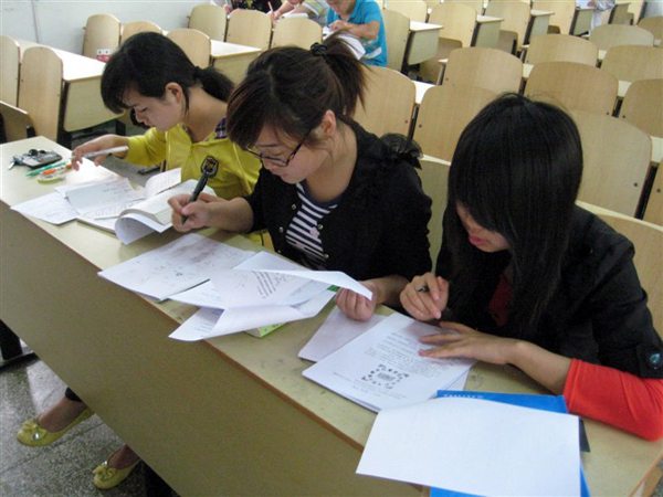 记者在现场看到,B类试卷包括行程问题、几何问题、数论问题、逻辑推理、应用题和阅读短文,谈谈感想等。来自人力5101班的余严东、杜慧、张进组成一个代表队,领到试卷后,大家先各自浏览试题,简单的部分各自演算,中途他们小声交流着,探讨最准确的答案,最后由张进填涂答题卡