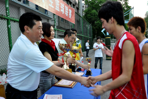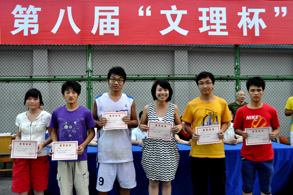 本网讯(员工记者 周瑄)5月9日下午,随着裁判的哨声吹响,为期半个月的第八届“文理杯”老员工篮球联赛最后一场比赛结束。 管理学部男女队分别战胜外语学部和经贸学部代表队,在随后进行的闭幕式上,党委副书记汪邦柱、工会主席石雯雯、学工处主任彭中、基础学部主任史千里等出席闭幕式。 理工学部男子力克管理学部,捧得桂冠;管理学部女队毫无悬念,再次蝉联冠军,豪取八连冠。此外,王玺、谢思思等获得“优秀运动员”荣誉称号,经贸学部女队和人文学部男队获得“体育道德风尚奖”,外语学部男子荣获“精神文明代表队”。蔡方敏等6人被评为“优秀裁判员”。 汪邦柱等为获奖单位和个人颁发荣誉证书。 颁奖典礼结束后,运动员们纷纷在球场上合影留念。 (摄影 李立科) (责任编辑 周芳)