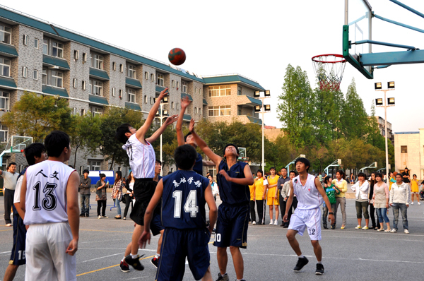 比赛刚开始,基础学部以一记快攻率先拿下两分,人文也不甘落后,立刻把比分扳平。整场比赛高潮迭起,优美的三分投篮、扣人心弦的篮板争抢、连贯的快步上篮引来场外观众的阵阵欢呼。