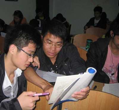 为营造良好的学习氛围,增强同学之间的沟通交流,经贸学部于近日在大一年级各班建起特色学习小组。经过半个多学期的学习相处,大一年级的辅导员何颖老师在班委的协助下,按英语和数学基础的差异将全班同学分为若干组, 并推选出英语和数学组长,晚自习时小组的成员坐在一起讨论学习中遇到的各种问题,取长补短。来自商务5091班的朱玲是第二小组的英语小组长,她除了抓好自己的英语学习外,还需要帮助小组内其他几名英语基础较差的同学进行英语四级备考。“我们各小组之间互相竞争,大家的学习积极性都提高了,晚自习也不觉得枯燥了,因为大家彼此之间互相交流学习,共同进步。”商务5091班班长王思思告诉记者。