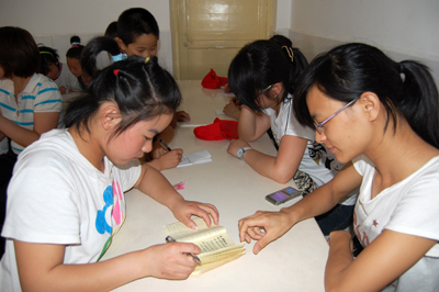 5月30日下午2时,志愿者们如约来到这个特殊的公司,大家精心编排了手语歌曲、武术、魔术等节目,提前和小朋友们一起庆祝“六一”儿童节。孩子们和志愿者一起欣赏节目,一起用笔和纸互相交流互动。活动始终被歌声、笑声和浓浓的爱意所包围,孩子们欢快的笑声也感染了每一位志愿者。小朋友们赞叹大哥哥们精彩的武术表演,同时也有一位小朋友主动站出来为大家献上了一首《海阔天空》,他认真的演唱赢得了阵阵掌声,还有三位小朋友带着害羞的表情一起合唱一曲《不该流的泪滴》,感动了所有志愿者,掌声久久未停息。三位小朋友演唱后回到座位上互相讨论哪里没有唱好,哪里没有唱整齐。“上帝在关上一扇门的时候,总会开启另一扇窗,其实这些特殊的天使很可爱。”一位外语学部的志愿者这样描述自己的感受,这位志愿者随后把自己准备的糖果分发给每一位孩子,孩子们有礼貌的接过糖果,并以微笑回应志愿者姐姐。