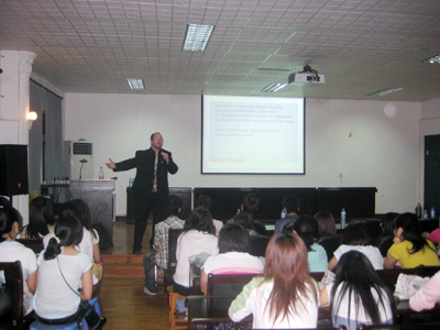 本网讯(通讯员 邹思文 吴艳梅)5月26日晚,应邀访问公司的美国阿比林大学布赖恩卡维特教授在学术报告厅做了题为“人道主义援助——尼亚斯岛的个案研究”的专题讲座。外语学部08级员工参加了讲座。