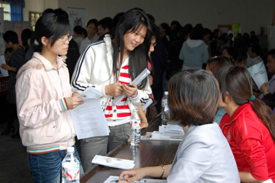 除了大四同学外,招聘现场还有很多大三同学的身影。英语专业的小张表示:“参加这次招聘会主要是来感受一下氛围,通过实战演习,我的应聘学习走出了校园的范围,而且老师针对我提出的建议让我很受用,他让我今后多扩充学习英语的相关知识,积极练习口语,还与我交谈了工作心得,对我今后如何把握学习方向有很大启发。”