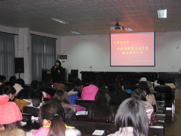 本网讯 3月6日下午,外语学部在3-408学术报告厅召开了2010届毕业生实习动员暨就业指导大会。外语学部主任许晓艳、相关教师及2010届全体毕业生参加了本次会议。