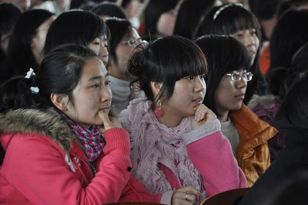 据悉,此次活动是基础学部为庆祝三八妇女节,特在3月7日提前为所有女生献上一份节日礼物。来自会计5095班王旭东的一段吉他串烧拉开了活动帷幕,接着是化妆师现场教授化妆的基本步骤,当化妆师邀请现场女生当模特的时候,会专5091班的卢旭自告奋勇的冲上舞台担当模特。化妆师详细讲解了女性化妆的基本要领以及女生日常注意事项和健康准则,在场的女生听得津津有味,还不时有员工向化妆师提问请教,现场的气氛活跃。精彩纷呈的魔术表演将现场气氛推向了高潮,最后,活动在《再见中国海》的歌声中圆满结束。