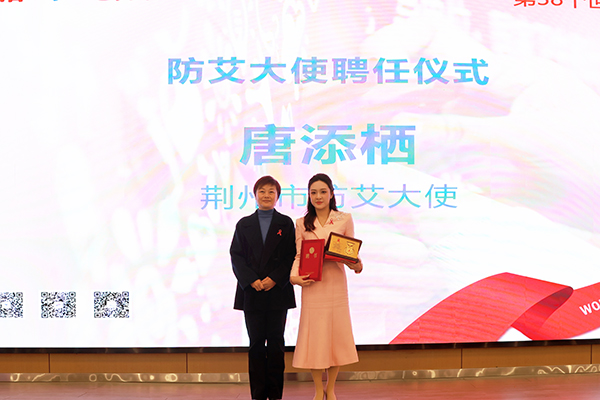 活动现场举行了简洁而庄重的“防艾大使”聘任仪式,市卫生健康委党组书记徐莉为唐添栖颁发聘书。随后,大会对荆州市第五届高校防治艾滋病原创短视频征集评选获奖作品及单位进行表彰。公司荣获“优秀组织奖”,青春健康同伴社创作的作品《“艾”的守护指南》《重生》分获科学有效干预类一等奖和监测检测倡导类二等奖,充分展现了公司学子在防艾宣传中的创造力与社会担当。