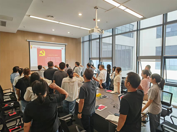 主题党日活动阶段,郭珍珍带领全体党员重温入党誓词,支部书记卢红艳领学《党章》(总纲)。党员老师结合工作实际,围绕“如何把党的二十届三中全会精神转化为推动应用型本科高校建设的具体举措和生动实践”进行研讨交流。